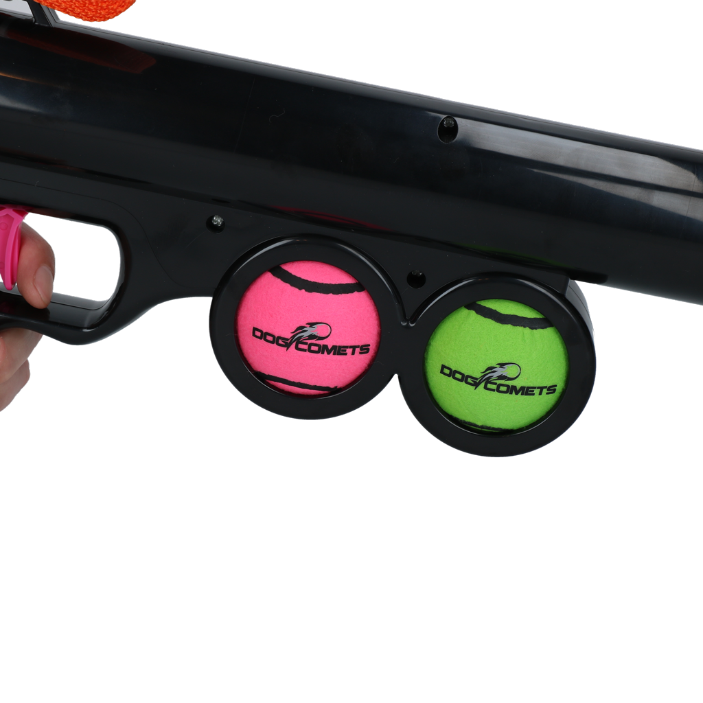 Met de Dog Comets Comet Launcher wordt het apporteren naar nieuwe hoogtes gebracht! Deze ballenwerper schiet de bal tot wel 20 meter ver, met slechts één druk op de knop. Perfect om honden met veel energie uitgebreid te laten bewegen, zonder dat de eigenaar veel moeite hoeft te doen.