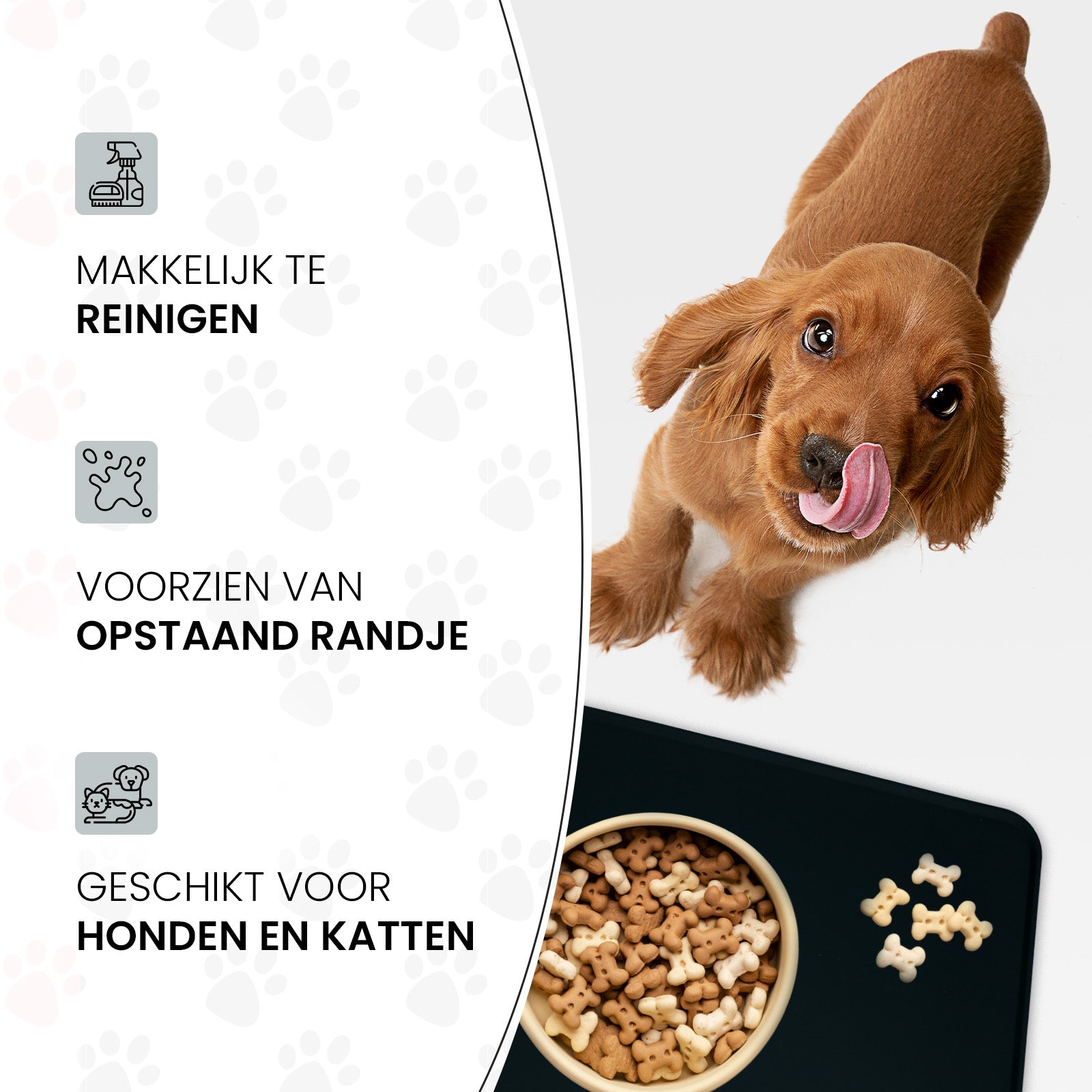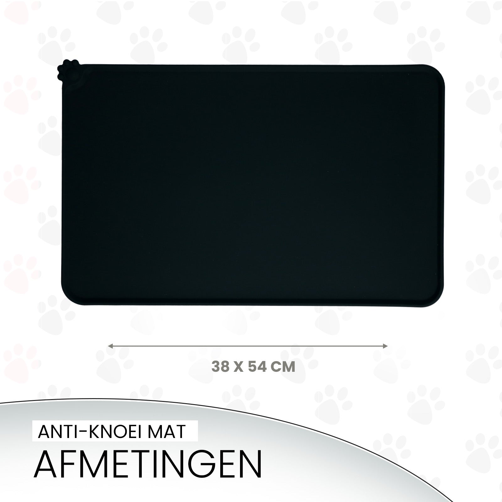Knoeit jouw hond of kat ook altijd met het eten of met water? Of komen er krassen op de vloer door de voer- en drinkbakjes? Een anti-knoei mat helpt de vloer schoon en mooi te houden en is gemakkelijk te reinigen. Deze mat heeft een stroeve textuur, waardoor deze niet over de vloer schuift. Ook blijven de voer- en drinkbakjes op de mat op hun plek staan. Door het opstaande randje blijft geknoeid water of eten op de mat liggen.