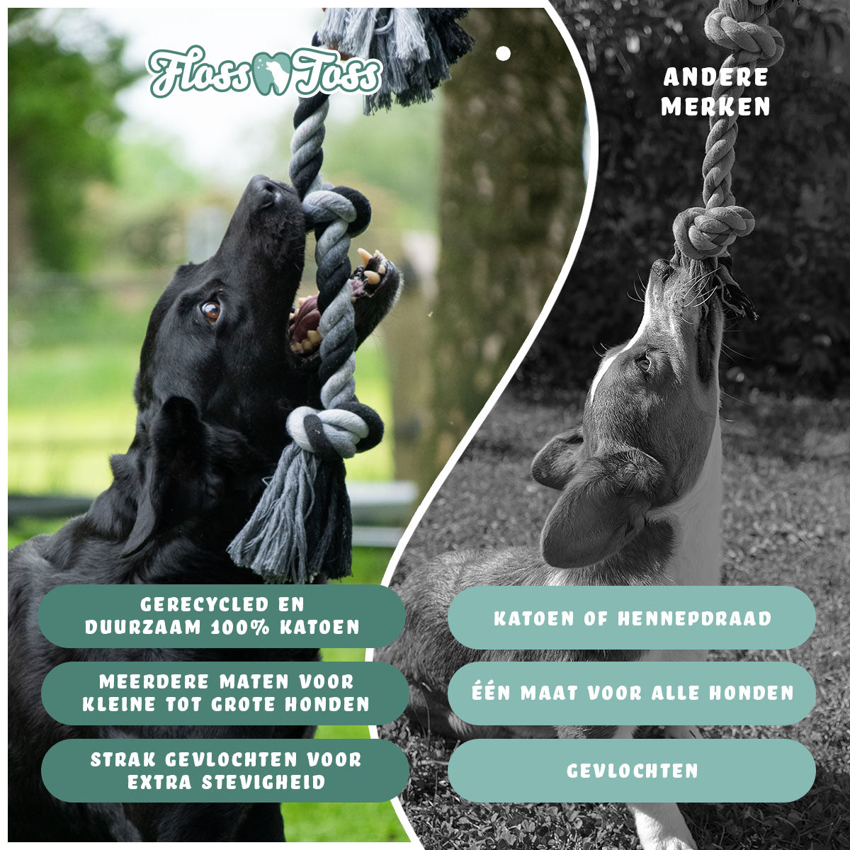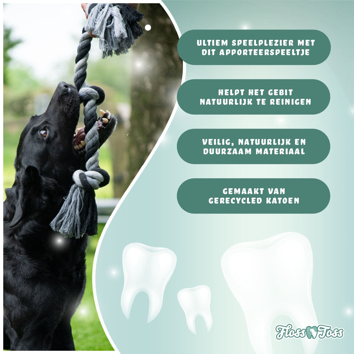 Kortom een het flossen met een flosstouw is onmisbaar voor iedere hond!