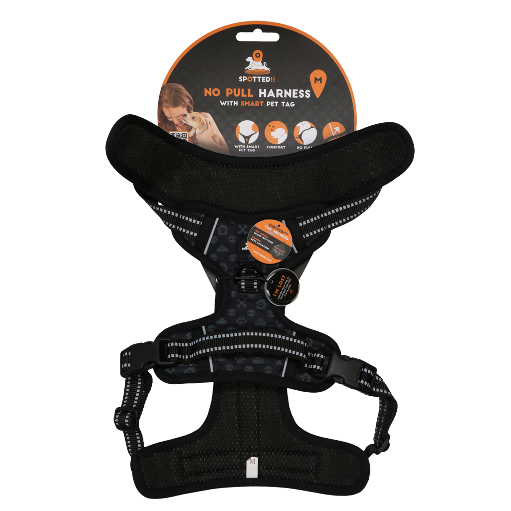 Dit harnas is uitgerust met de Spotted Pro Tag, een innovatief systeem voor hondenidentificatie. De Spotted Pro Tag is een digitale hondenpenning die eenvoudig te scannen is via een QR code of NFC chip. Met de gratis app kunt u alle gegevens van u en uw hond vermelden, zoals contactgegevens en informatie over uw hond. Wanneer uw hond wegloopt en gevonden wordt, krijgt u een melding dat de hond is gescand. De vinder krijgt dan de contactgegevens van u te zien en de informatie over uw hond die u wilt delen. Hierdoor kan de vinder contact met u opnemen en uw hond terugbrengen naar u.